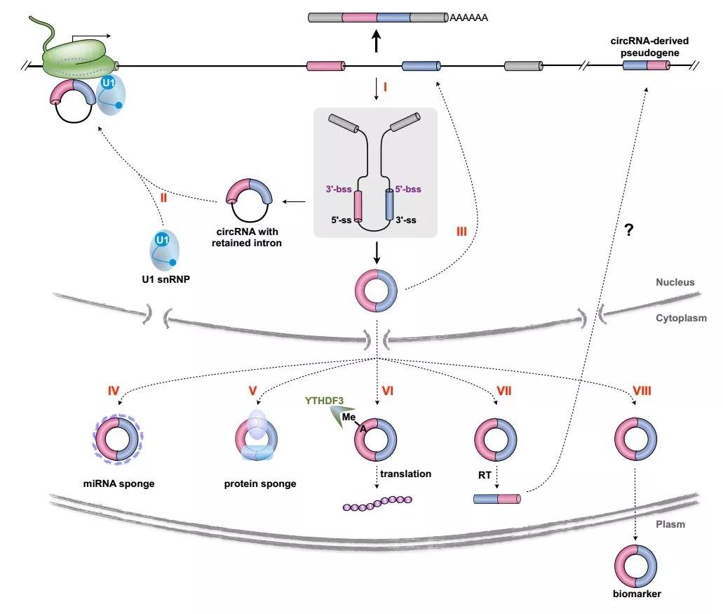 环状RNA的8种生物学功能