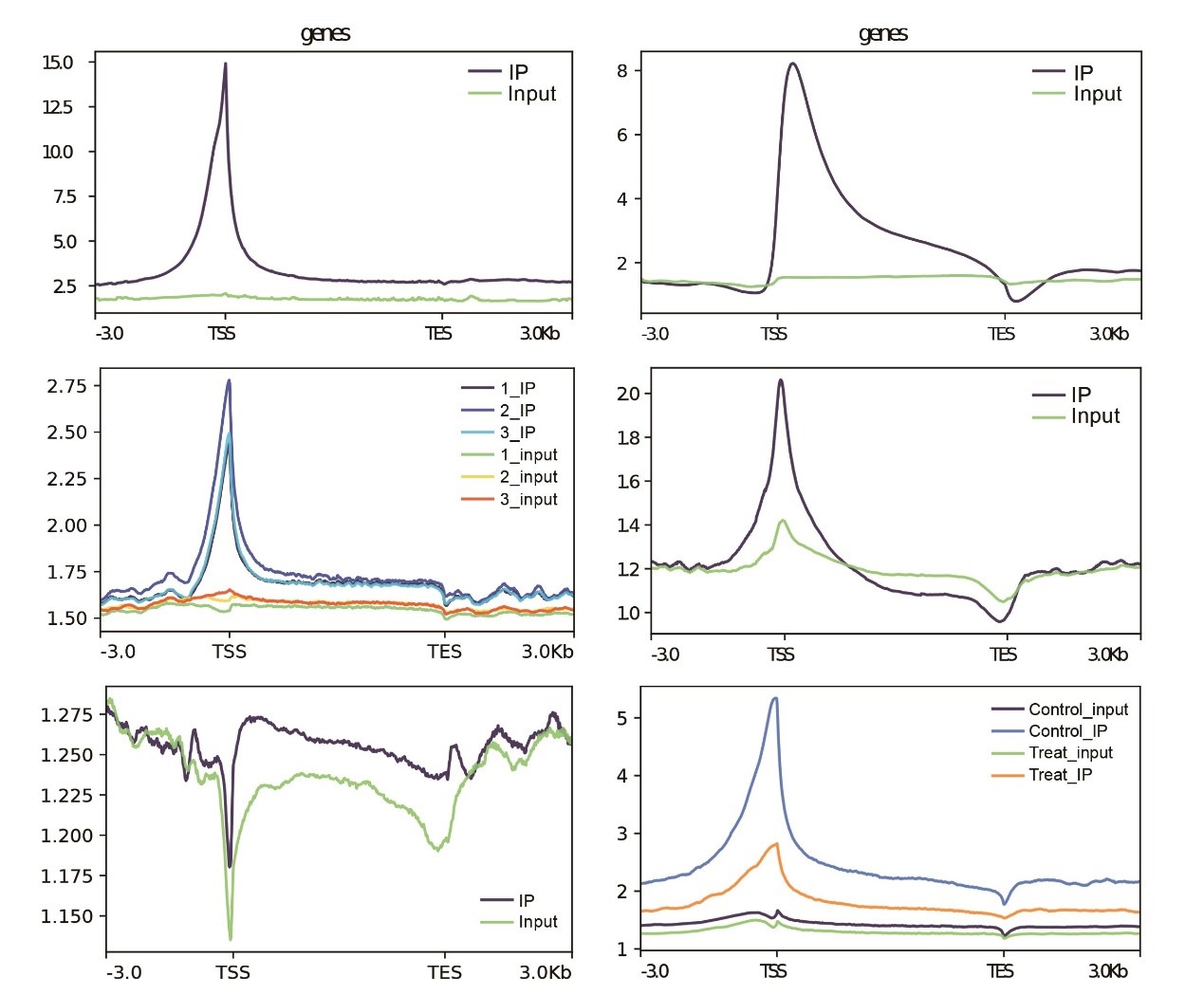 本结果为未经peak calling 的原始reads 在基因上的分布。好的ChlP-seq reads 会根据蛋白的特征表现出不同的分布模式。