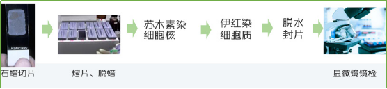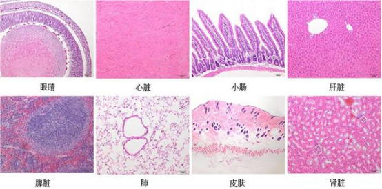 HE染色即苏木精-伊红染色法( hematoxylin-eosin staining ),是石蜡切片技术里常用的染色法之一。苏木精染液为碱性,主要使细胞核内的染色质与胞质内的核糖体着紫蓝色;伊红为酸性染料,主要使细胞质和细胞外基质中的成分着红色。